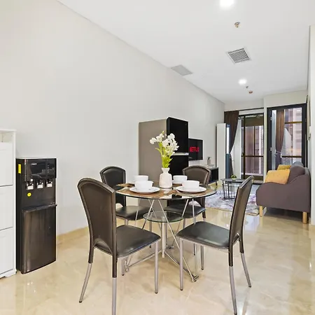 Апартаменты Ardo by Kozystay - Sudirman с балконом и обеденной зоной оснащены такими удобствами, как телевизор с плоским экраном и спутниковыми каналами. Всего в апартаментах 3 спальни. 1 ванная комната оснащены биде, отдельным туалетом и душем, а также феном и полотенцами.
